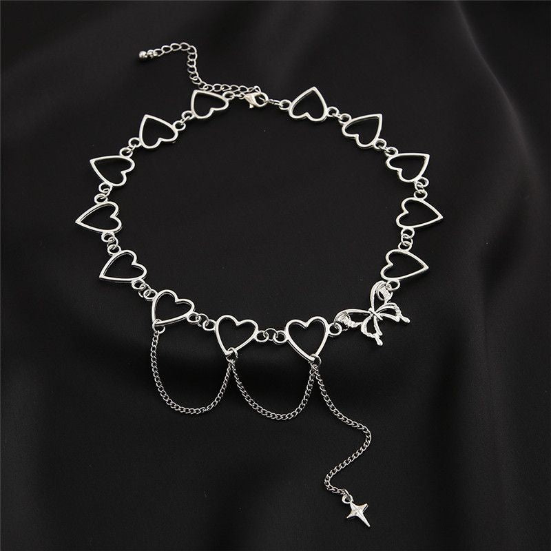 Kpop Vintage Harajuku Goth Metal Heart Neck Chains Choker Grunge Necklaces For Women Egirl Cosplay Aesthetic Accessories Jewelry