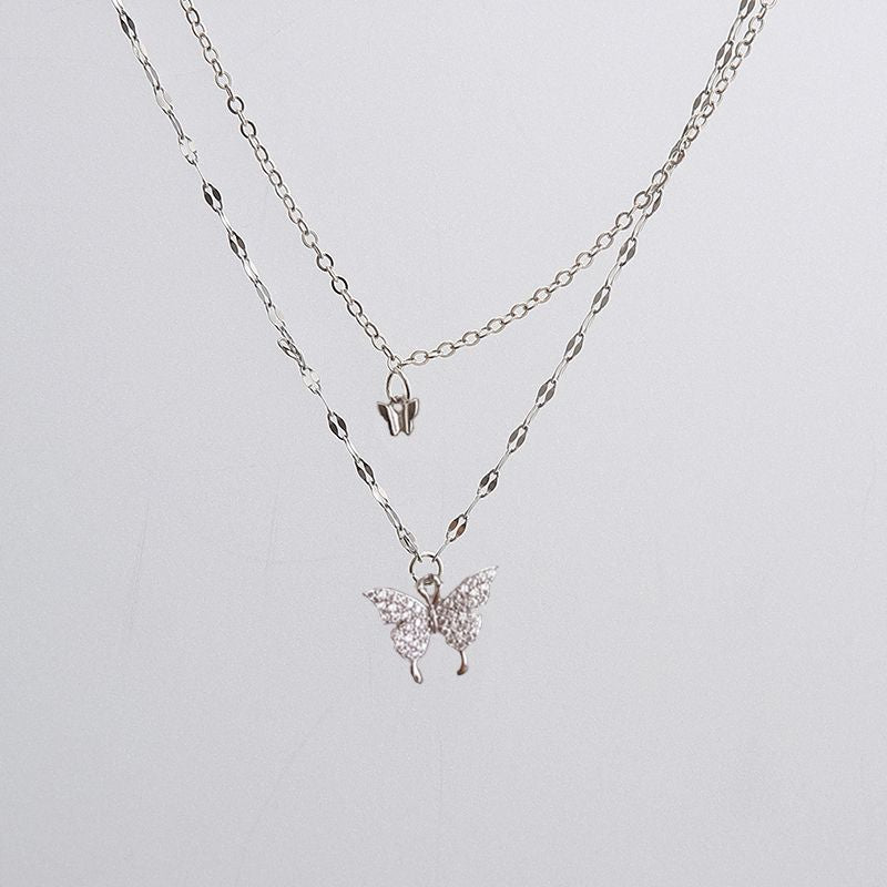 Luxury Necklace for Women Butterfly Necklace Shiny Double Chain Clavicle Pendant Anniversary Gift Jewelry Necklaces for Women