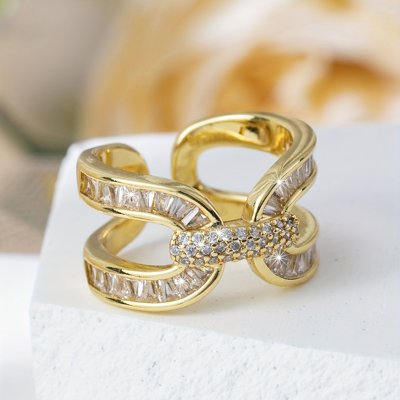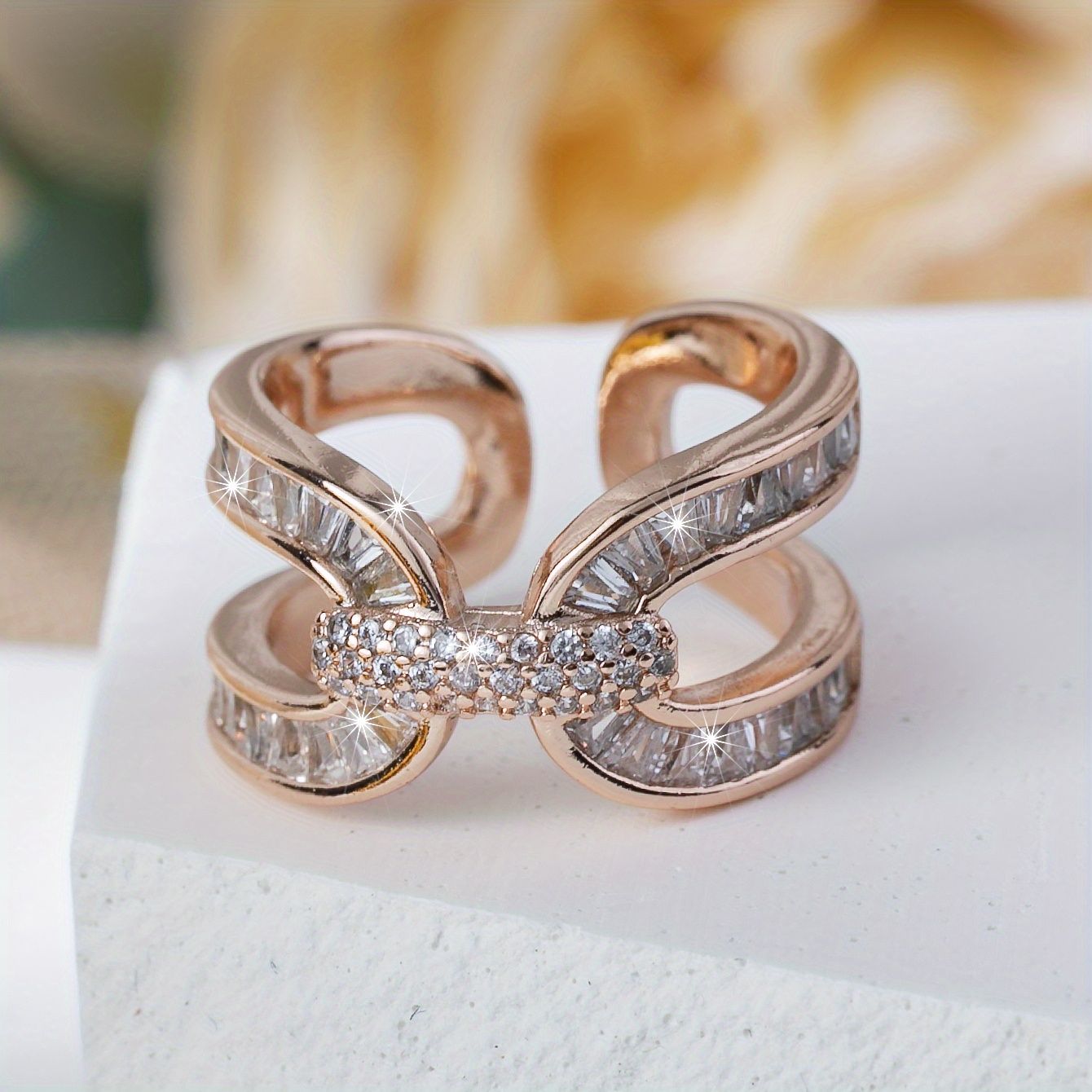 Luxury Simple Criss Cross Cuff Zircon Lady Wedding Ring Wrist Ring