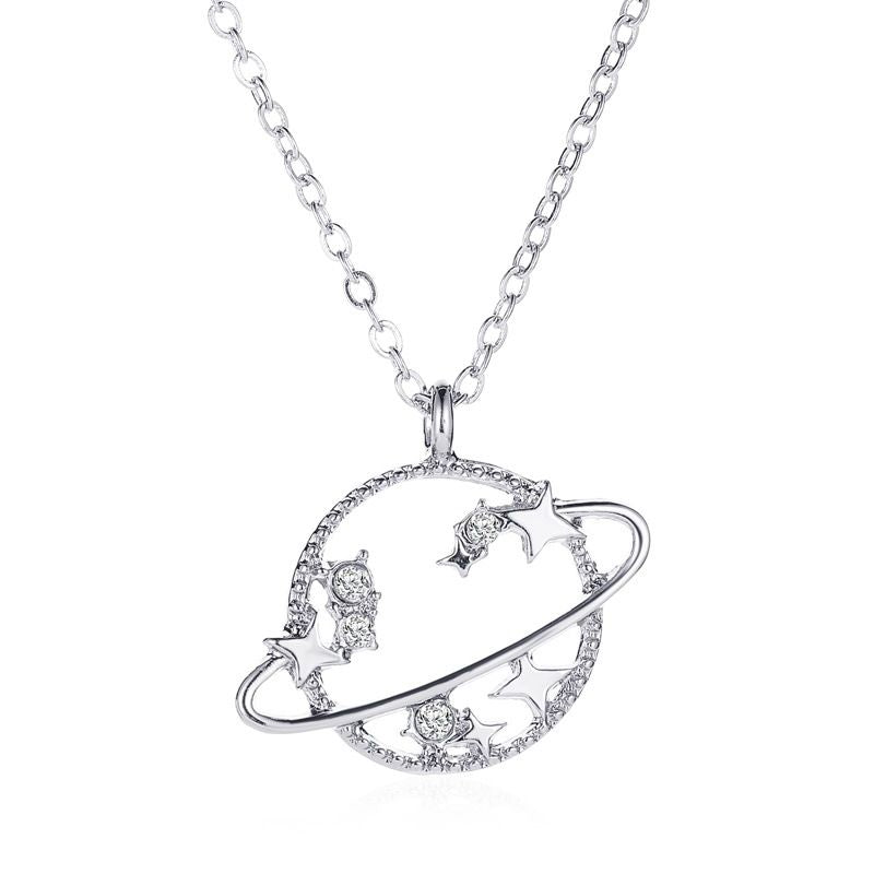 New Korean Zircon Hollow Planet Universe Pendant Necklace For Women Charm Fashion Choker Neck Chain Wedding Jewelry Girls Gift