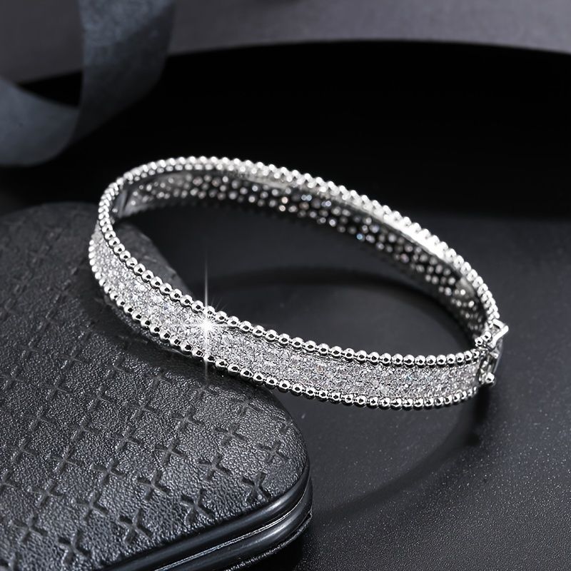 Simple Bangle Bracelet With Full Of Sparkly Zircon Bracelet All-match Jewelry For Women & Girls Clothing Accessories