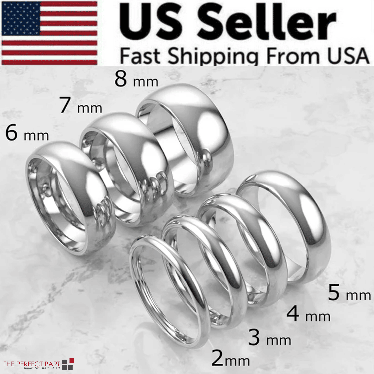 Tungsten Carbide Silver Polished Plain Wedding Band Ring 2mm 3mm 4mm 6mm 8mm 10m
