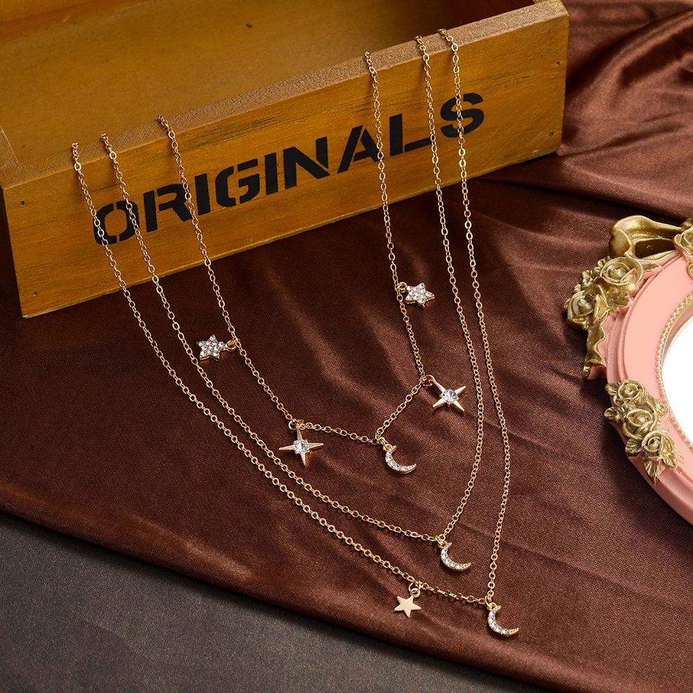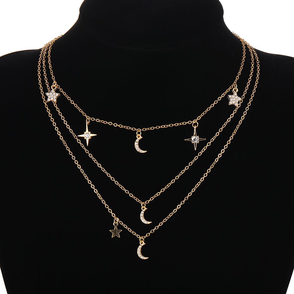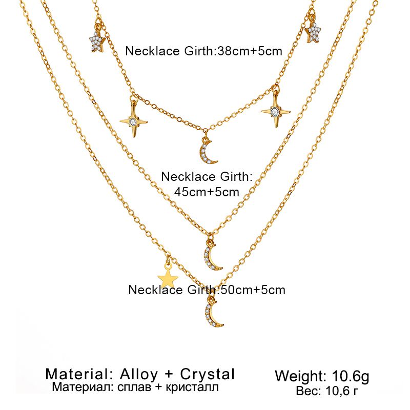 Vintage Crystal Pendant Necklace For Women Bohemian Multilayer Star Moon Crystal Layered Collar Necklace Jewelry Party Gift